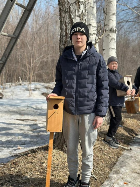 Мероприятие прошло совместно с Усть-Каменогорским лесным хозяйством «Ертіс Орманы». В рамках акции Айбар внёс свой вклад в заботу о природе - установил скворечник, создавая уютный дом для пернатых друзей 🌿